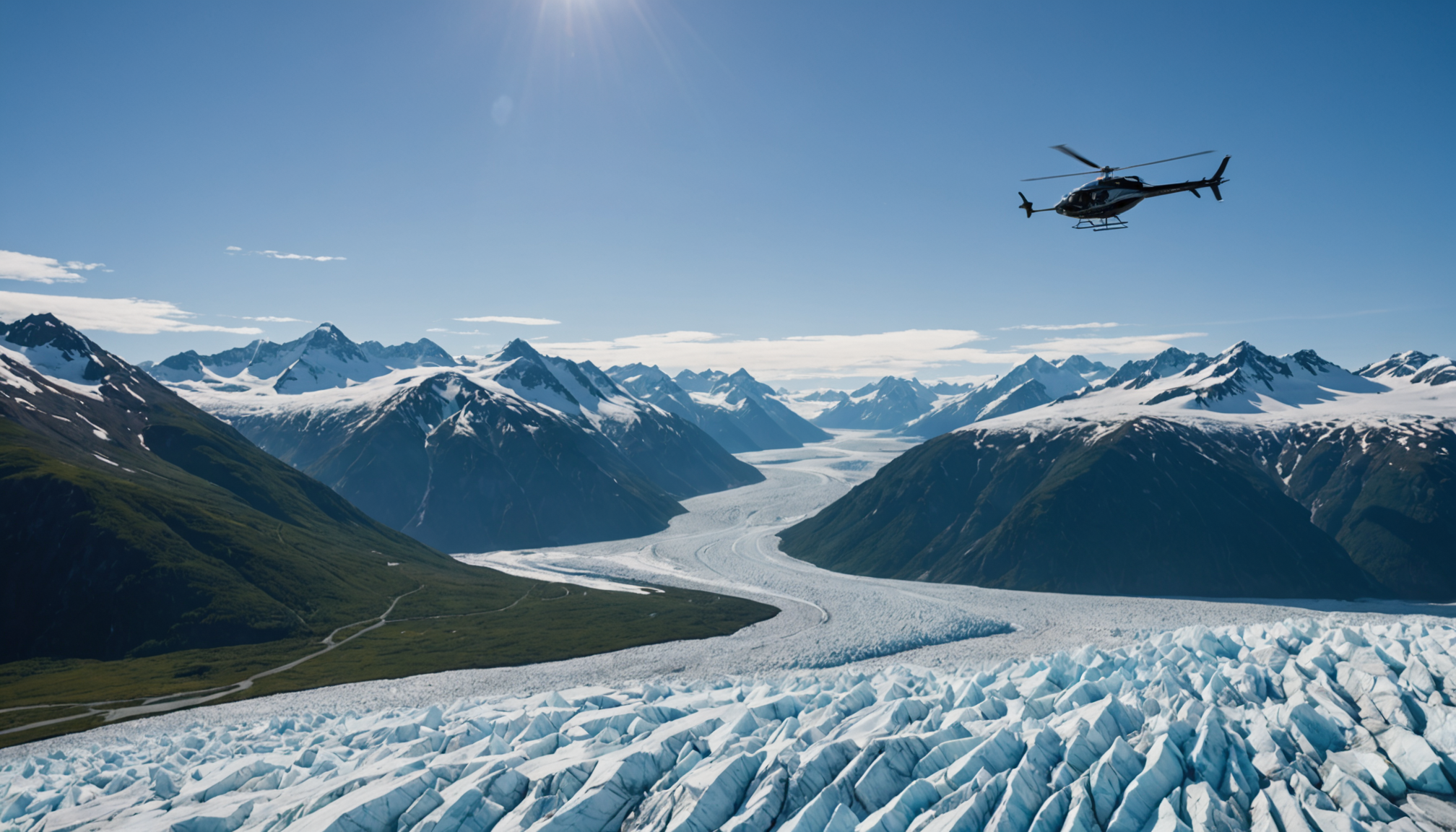 Capturing the grandeur of Alaska from a helicopter requires some planning. Use a camera with a fast shutter speed to handle the motion of the helicopter. A polarizing filter can help reduce glare from snow and ice. Be mindful of reflections from the helicopter windows; wearing dark clothing can minimize these. Always secure your gear to prevent any accidents during the flight.